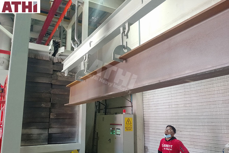 高架输送式抛丸机设计紧凑,可设计为有坑或无坑。
