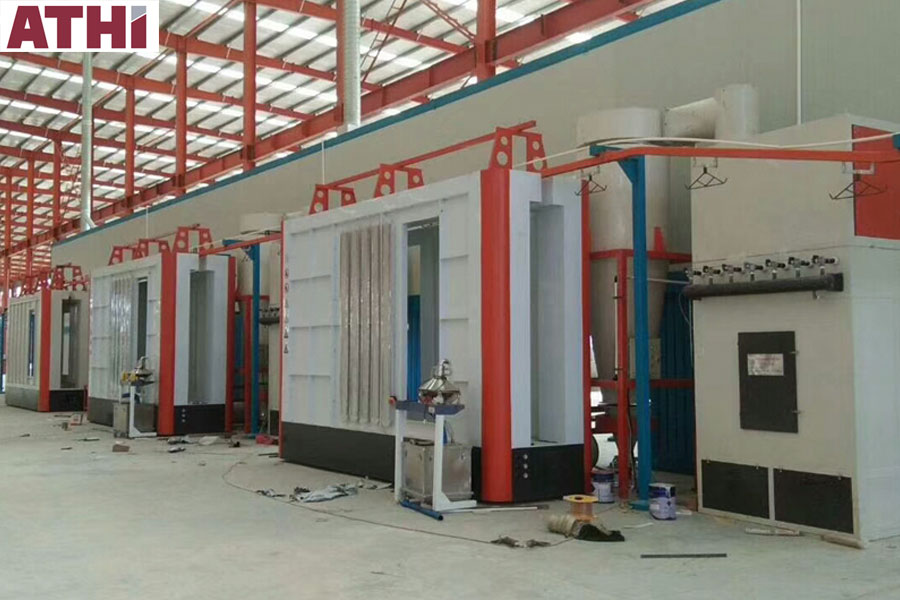 主要结构:前处理设备、喷粉系统、喷漆设备、烘炉、热源系统、电控系统、悬挂输送链等。